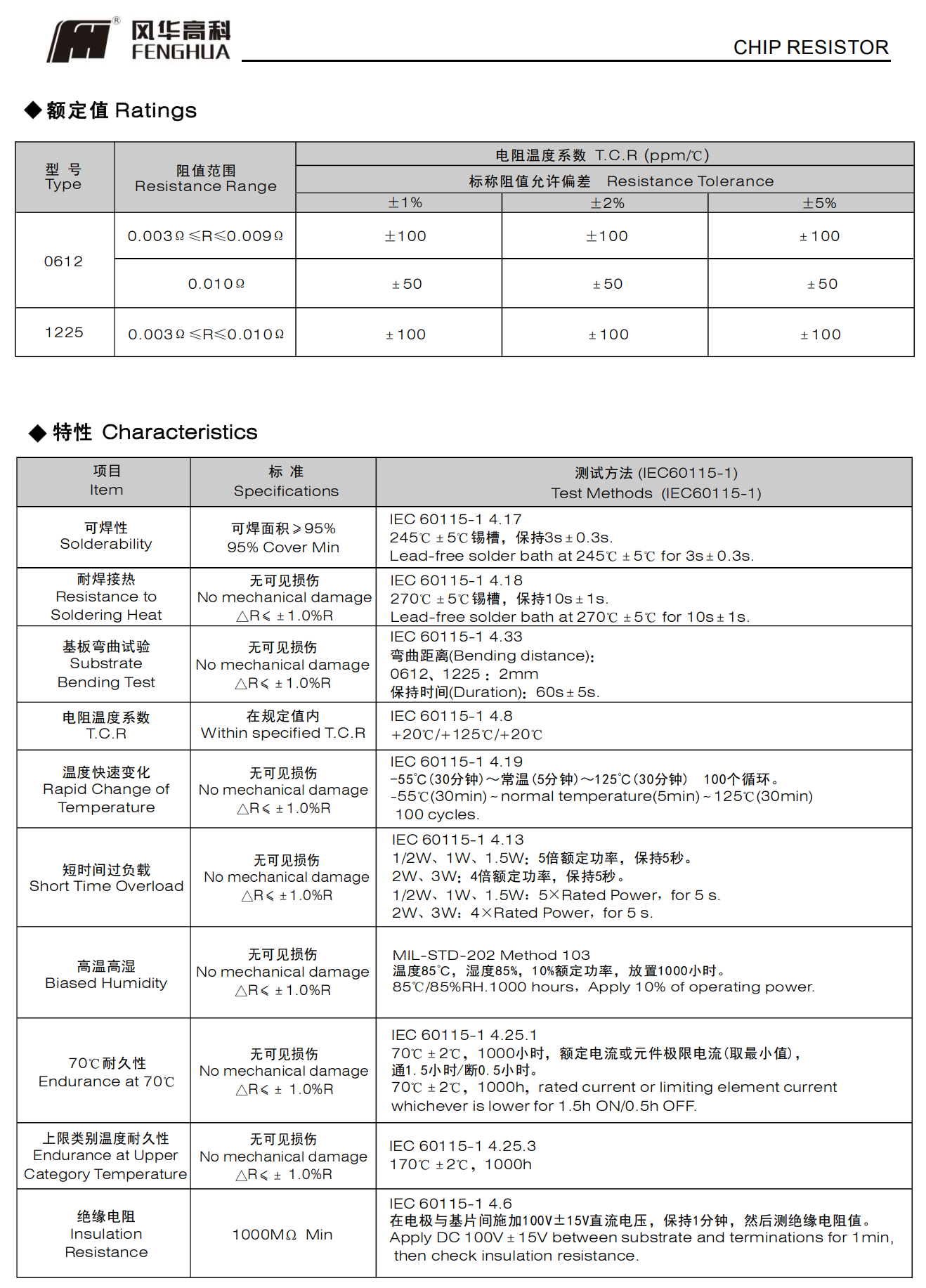 最低TCR为±50 ppm/℃