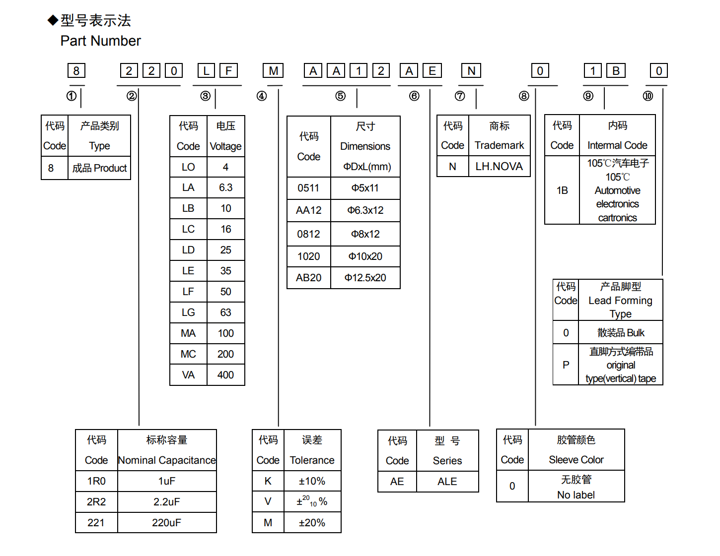 ■ALE车规系列高频低阻抗标准引线型电解电容器◆特征* 寿命: 105℃ 2000~5000 小时* 低阻抗特性* 符合 AEC-Q200* 符合 RoHS◆应用:* 适用于汽车模块电子产品