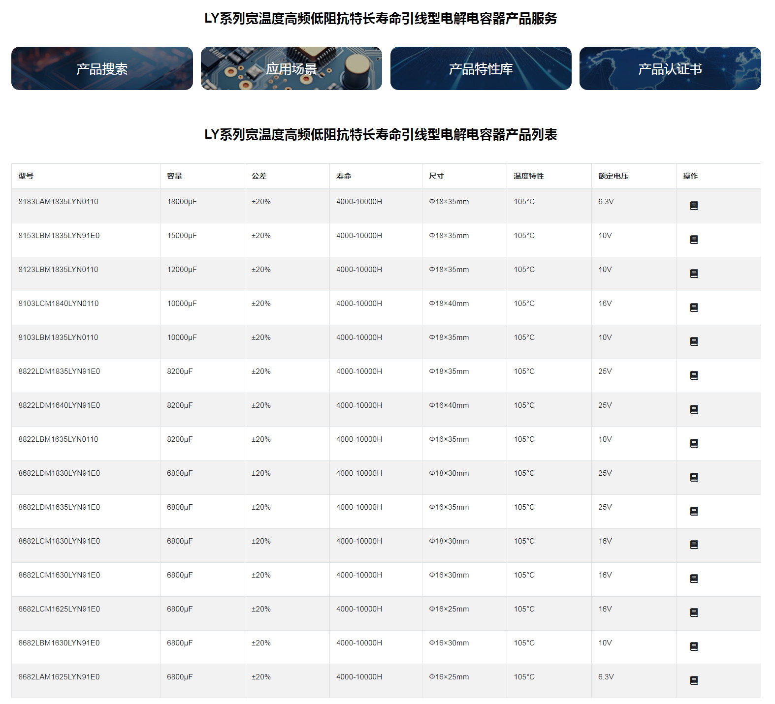 ■LY系列宽温度高频低阻抗特长寿命引线型电解电容器